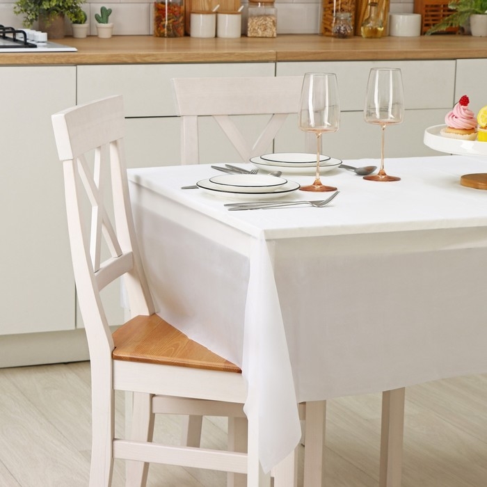 Скатерть на стол Доляна «Праздничный стол», 137×183 см, толщина 30 мкм, цвет белый