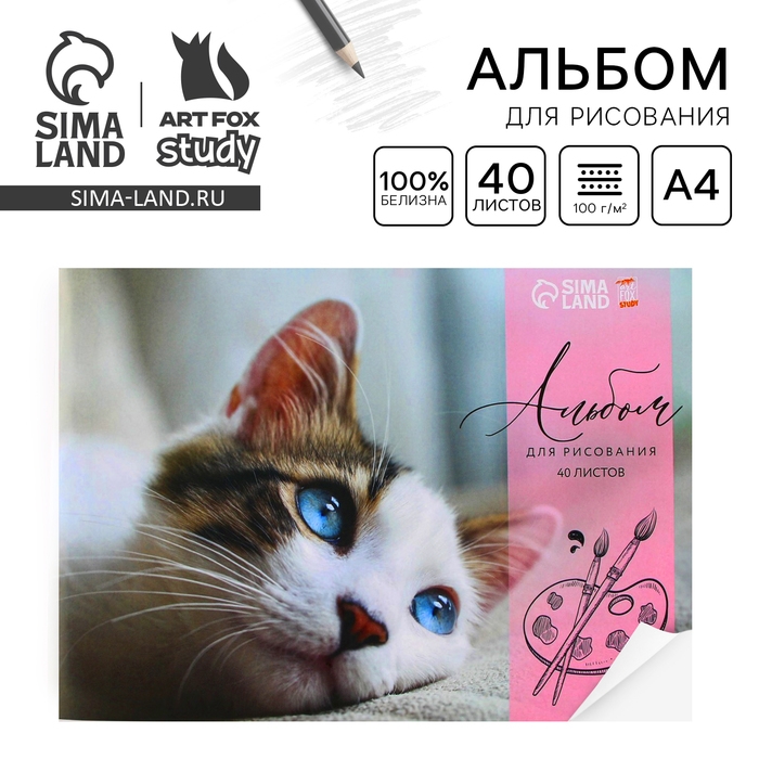 Альбом для рисования 40 листов А4 на скрепке «1 сентября: Котёнок» обложка 160 г/м2, бумага 100 г/м2.