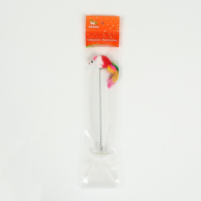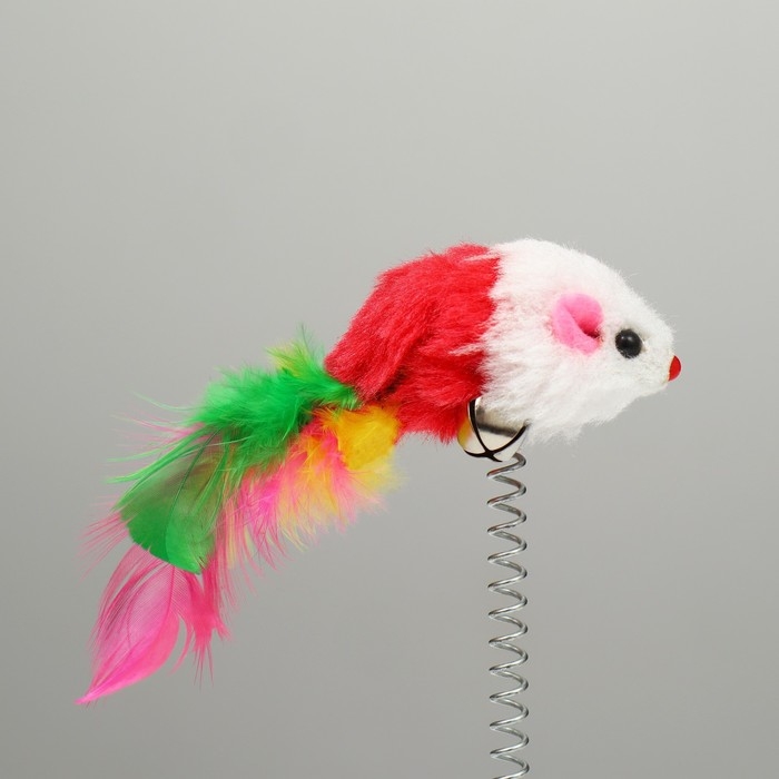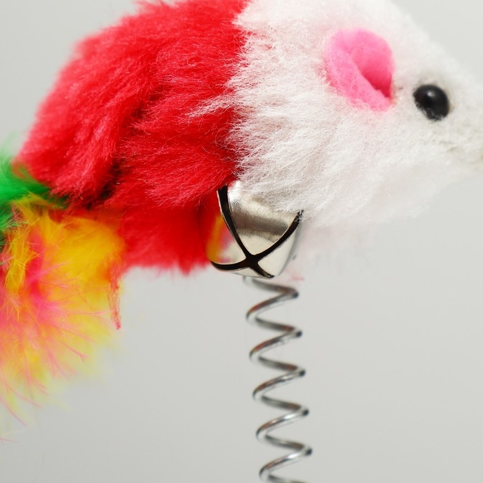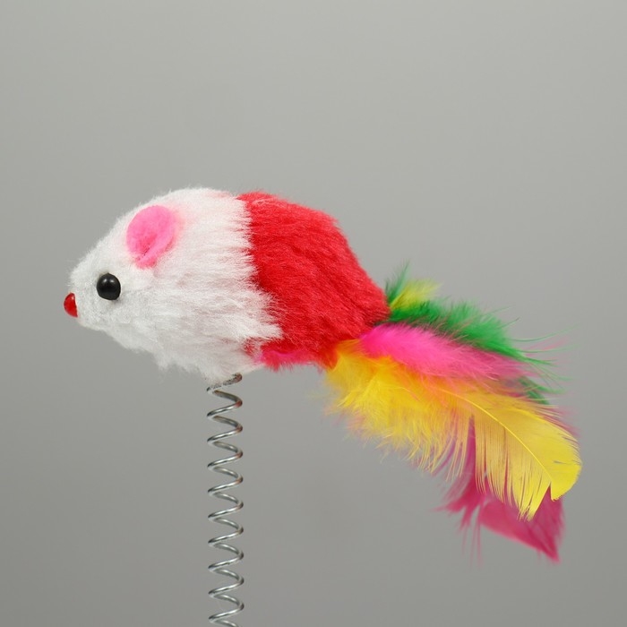 Дразнилка "Мышь на присоске", искусственный мех с цветными перьями,24 см, мышь красная/белая