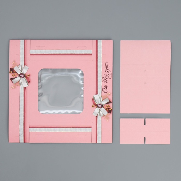 Коробка для 8 конфет + шоколад, с окном, розовая, 17,7 х 17,7 х 3,8 см. Кондитерская упаковка