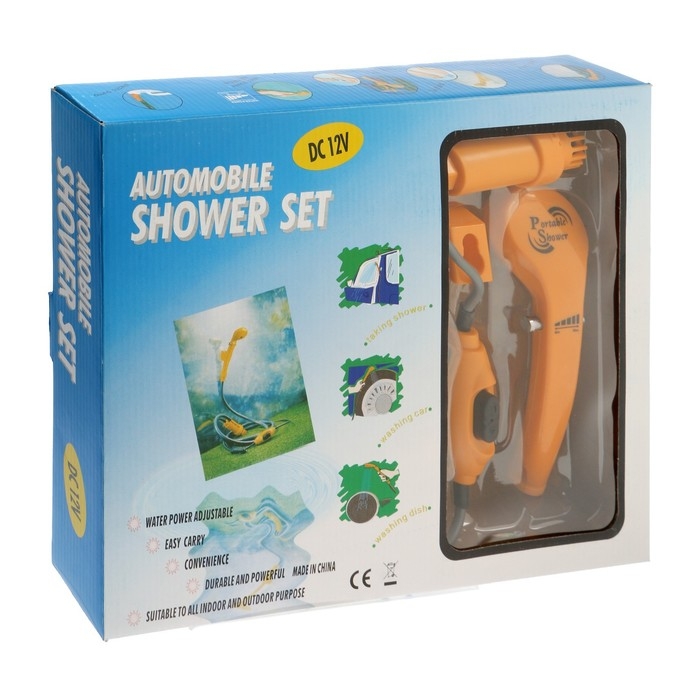 Автомобильный походный душ ZEIN: лейка, шланг, шнур для машины, помпа, крючок, держатель