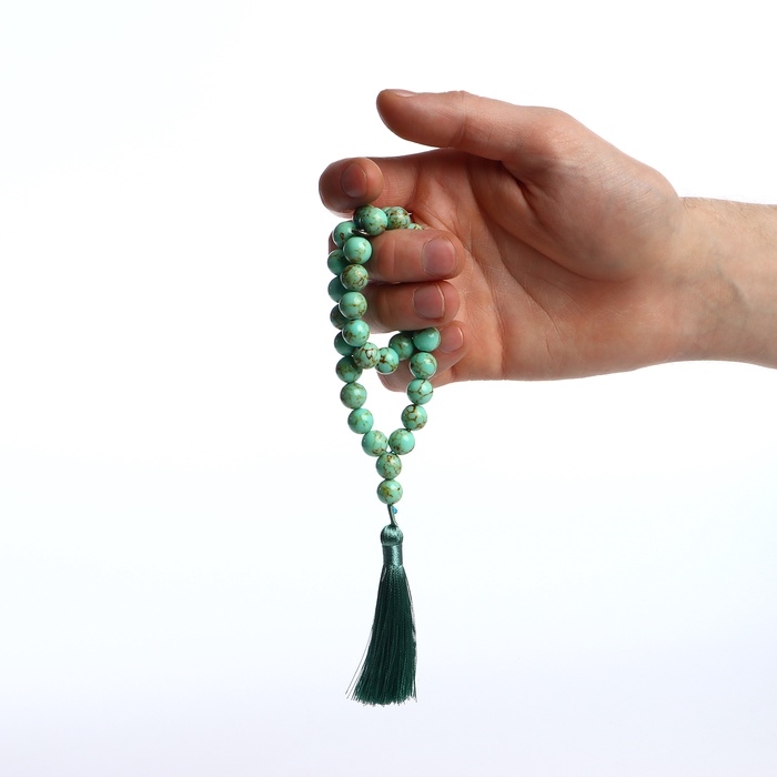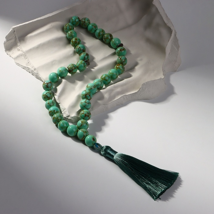 Чётки мусульманские шар №10 «Бирюза старая», 35 бусин через перемычку