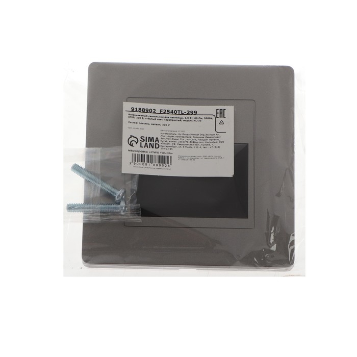 Встраиваемый светильник для лестницы, 1,5 Вт, 60 Лм, 3000К, IP20, 220В, т-бел. свет, серебр.