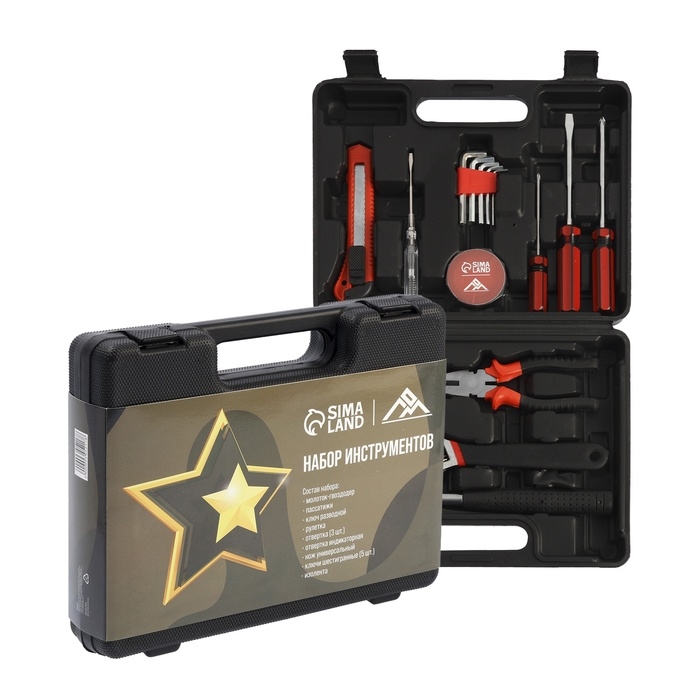Набор инструментов в кейсе ЛОМ "23 ФЕВРАЛЯ", в подарочной упаковке, 15 предметов