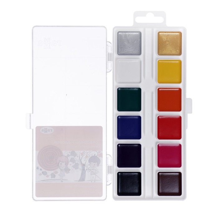 Краски акварельные 12 мл, в металлической тубе, в картонной коробке, 12 цветов
