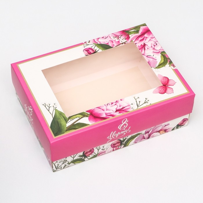 Коробка складная, с окном "Весенние пионы" 21 х 15 х 7 см