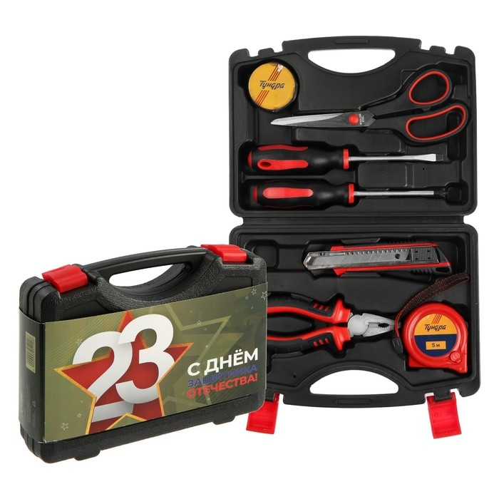 Набор инструментов в кейсе ТУНДРА "23 ФЕВРАЛЯ", в подарочной упаковке, 7 предметов
