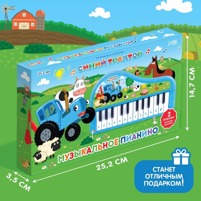 Музыкальное пианино «Синий трактор», звук, цвет синий