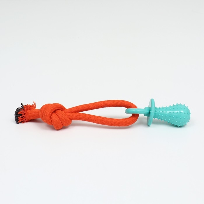 Игрушка жевательная с канатом "Сосочка", до 25 см, оранжевая/голубая