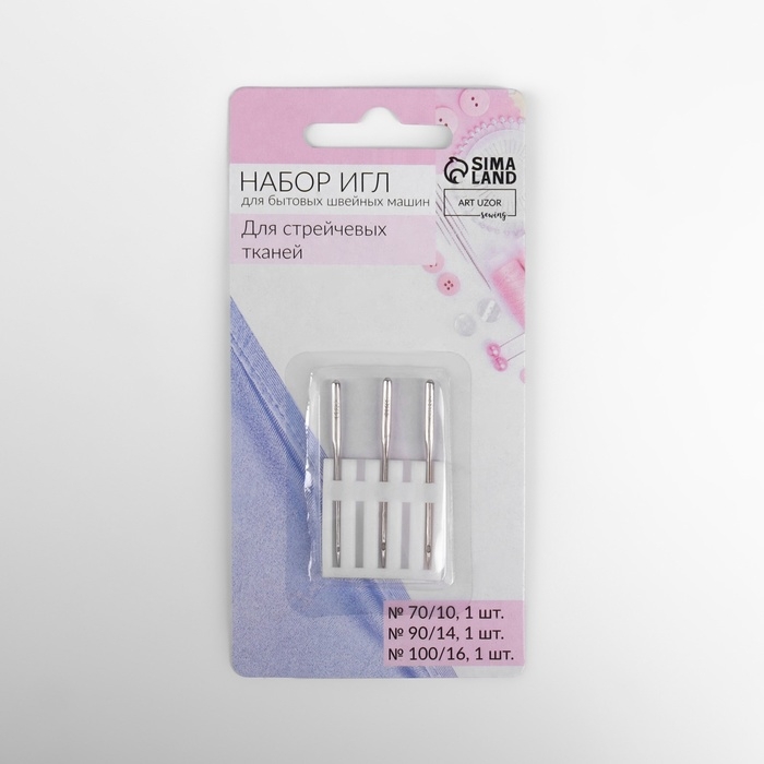 Иглы для бытовых швейных машин, для стрейч-ткани, №70-100, 3 шт