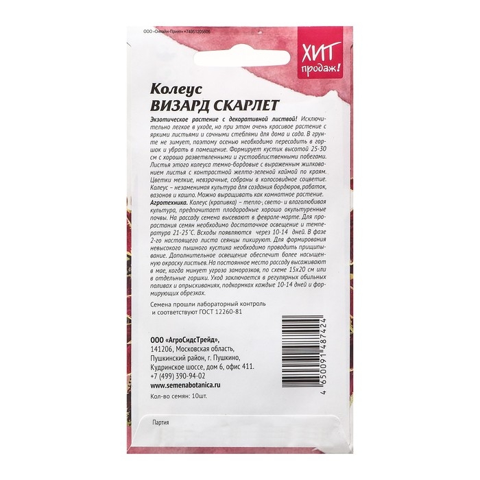 Семена цветов Колеус "Визард Скарлет", 10 шт