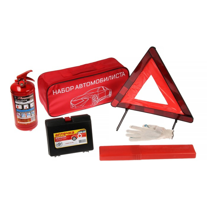 Набор автомобилиста "Стандарт" Престиж №3, на 5 предметов незаменимый аксессуар в вашем автомобиле, в комплект входят знак аварийной остановки, аптечка, порошковый огнетушитель и перчатки. Все упаковано в компактную и надежную сумку которая не займет много места в багажнике.