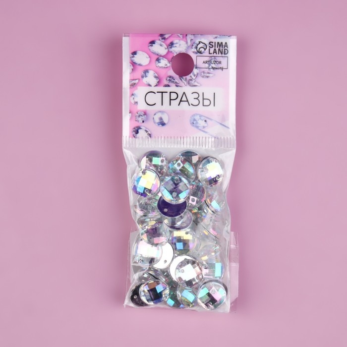 Стразы пришивные «Круг», из органического стекла, с голографией, d = 10 мм, 50 шт