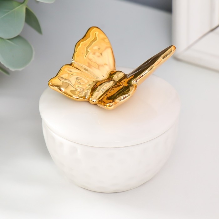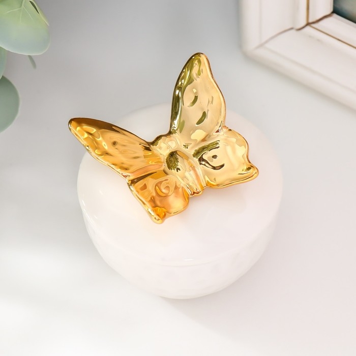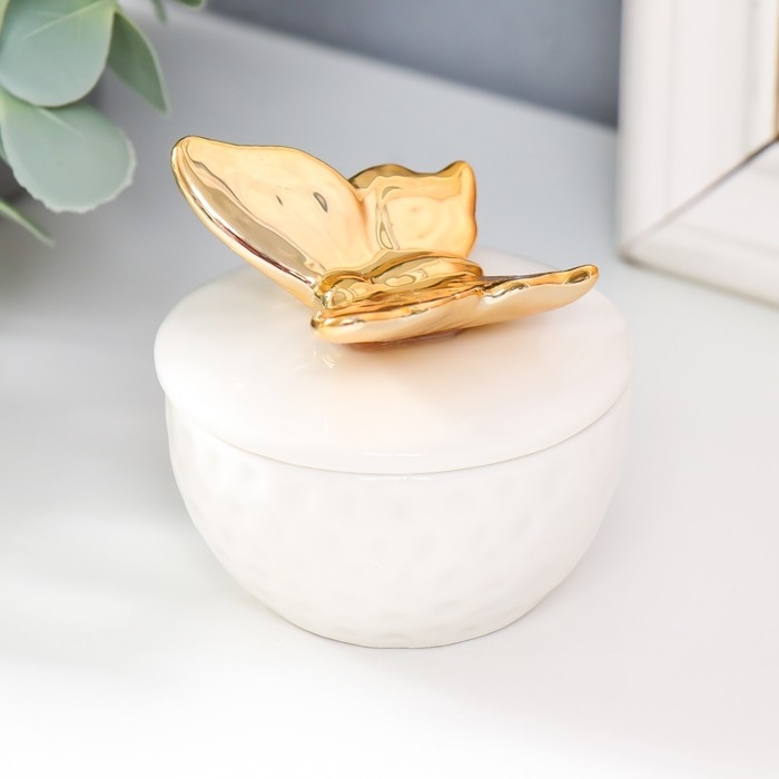 Шкатулка керамика "Золотая бабочка" белая 6,5х6,5х6 см