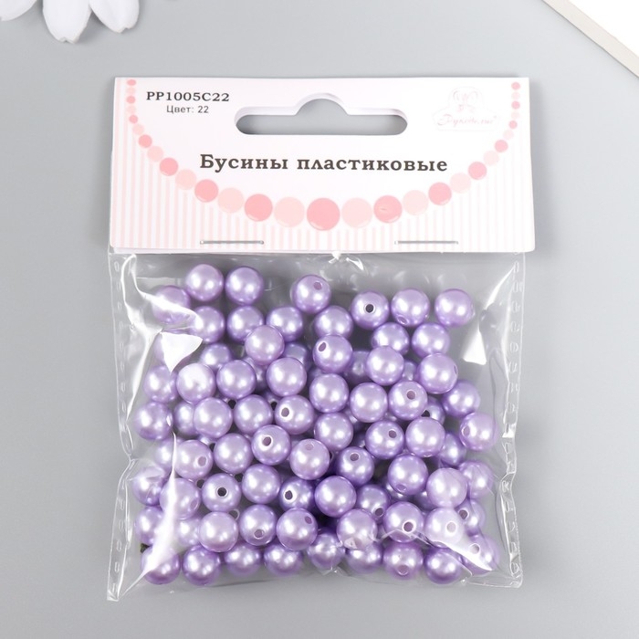 Набор бусин "Рукоделие" пластик, диаметр 8 мм, 25 гр, сиреневый