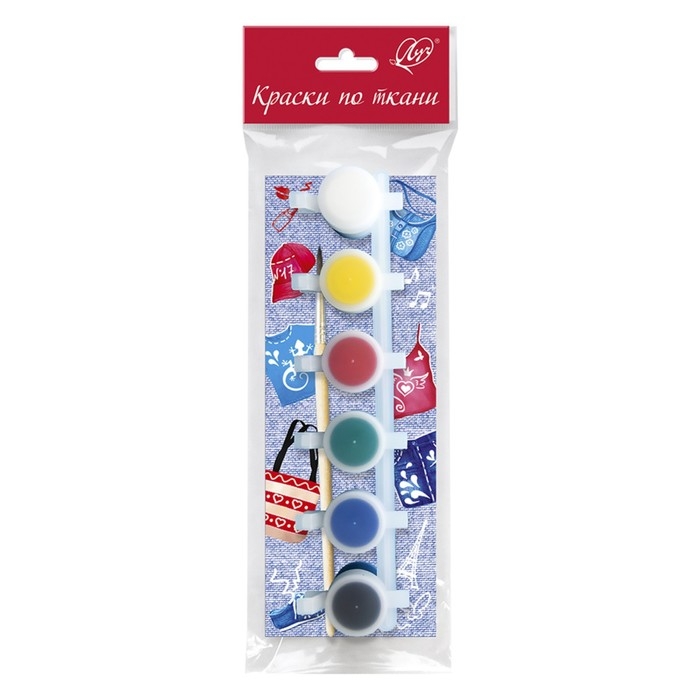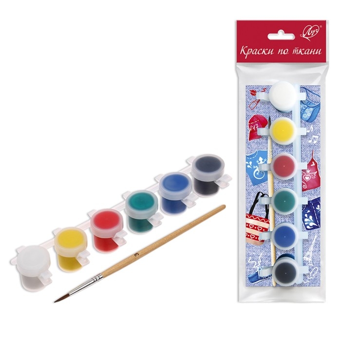 Краска по ткани, набор 6 цветов х 5 мл, Луч, акриловая на водной основе, с кистью