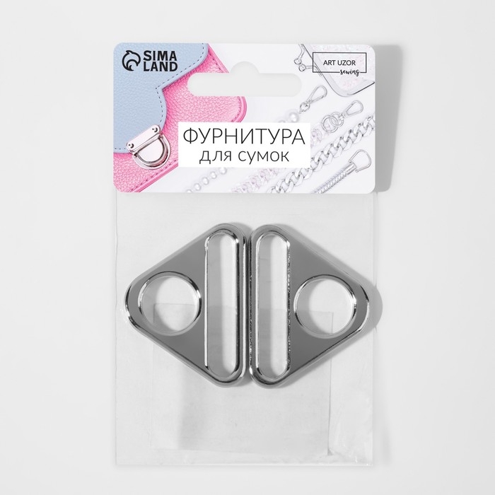 Полукольцо-пластина для сумки, 15/50 мм, 2 шт, цвет серебряный