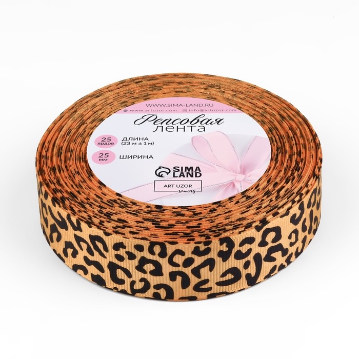 Лента репсовая «Леопард», 25 мм, 23 ± 1 м, цвет бежевый/чёрный