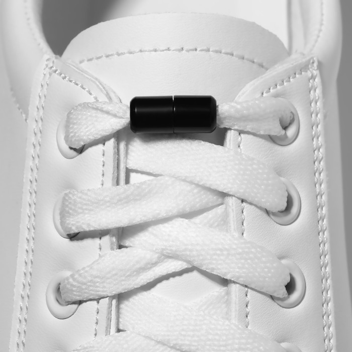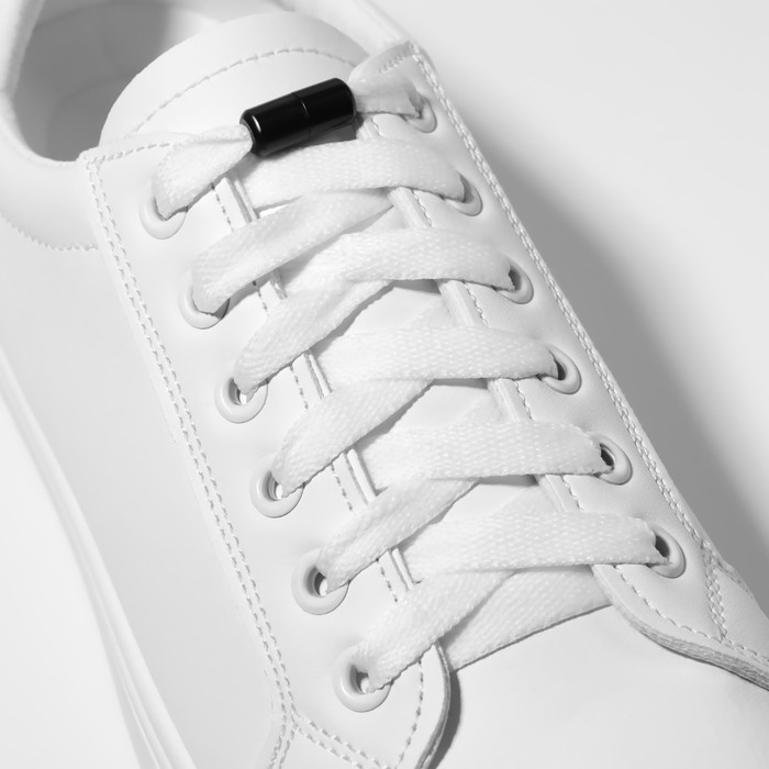 Шнурки для обуви, пара, плоские, с фиксатором, эластичные, 6 мм, 100 см, цвет белый