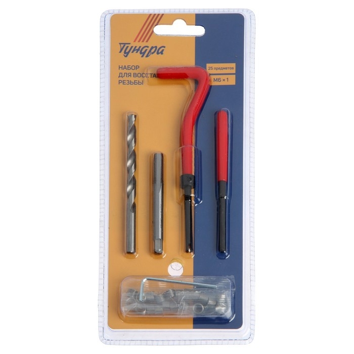 Набор для восстановления резьбы ТУНДРА, М6х1, 25 предметов