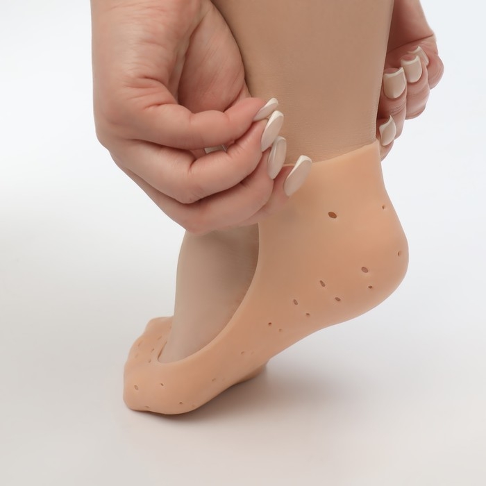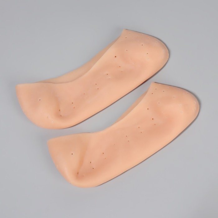 Носочки для педикюра, силиконовые, с перфорацией, 18 × 8 см, цвет бежевый