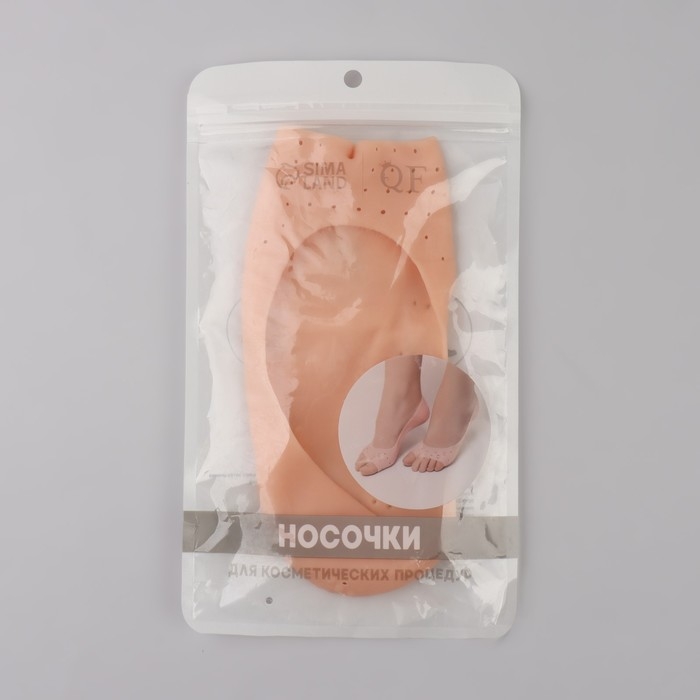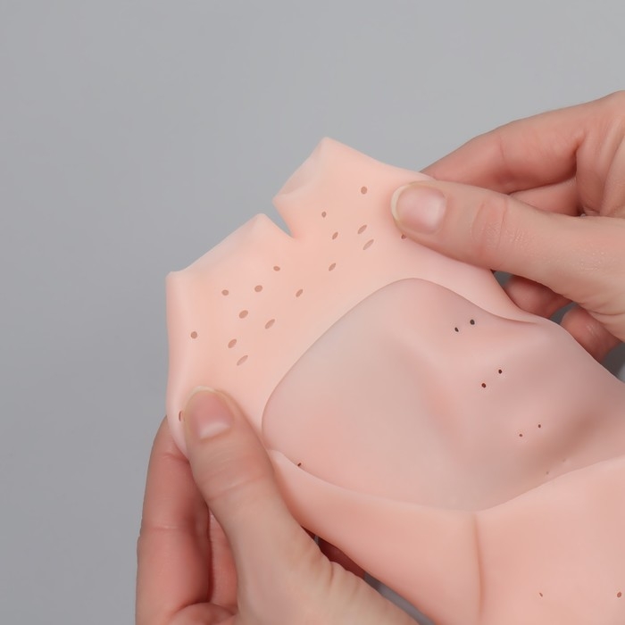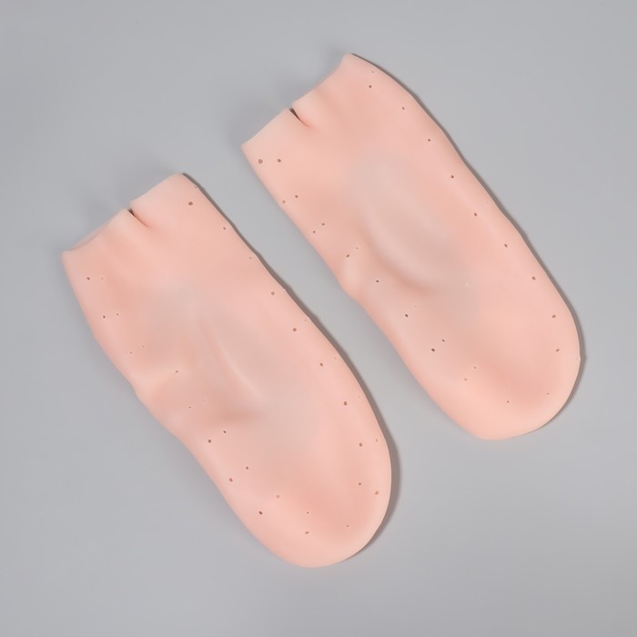 Носочки для педикюра, силиконовые, с перфорацией, с разделителем, 17 × 7 см, цвет бежевый