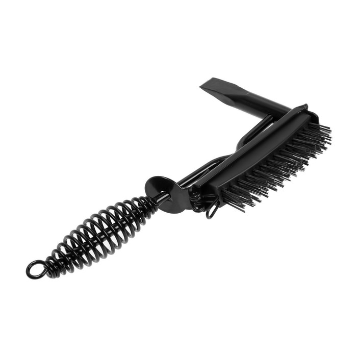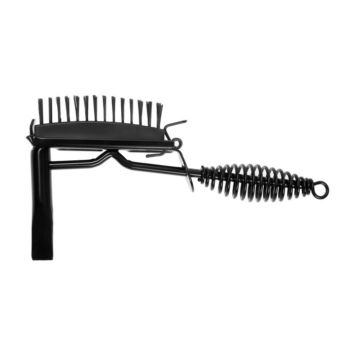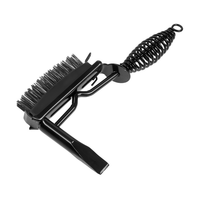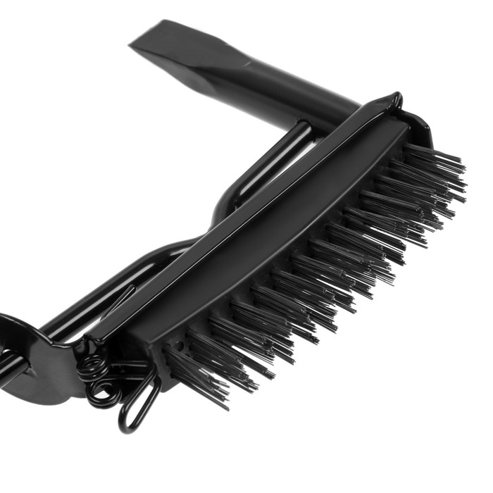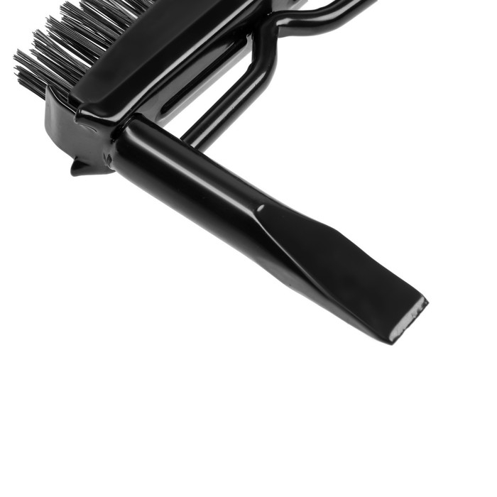 Изделие с двухсторонним бойком – с одной стороны расположено зубило, а с другой — сменная металлическая щетка для удаления более мелкого шлака и зачистки рабочей поверхности.