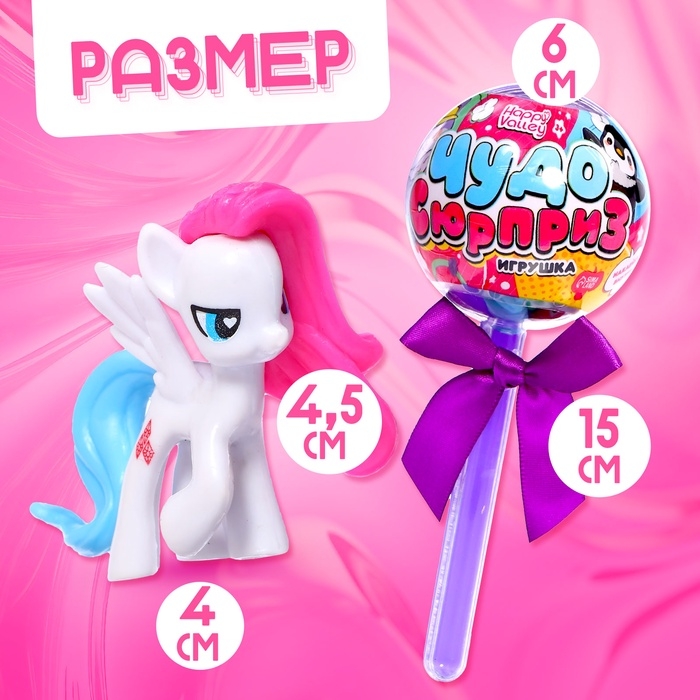 Ваша принцесса любит играть и получать сюрпризы? Тогда этот набор станет отличным подарком, ведь внутри она найдёт игрушку-пони и наклейки! Упаковка выполнена в виде леденца на палочке, поэтому набор можно вручить в подарок даже без дополнительной праздничной упаковки.