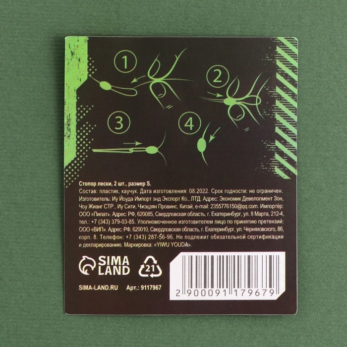 Стопор рыболовный лески «Рыболовные войска», 2 шт., размер S.