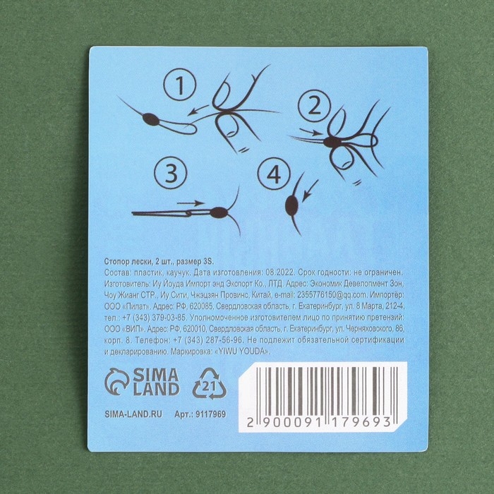 Стопор рыболовный лески «Рыболовные войска», 2 шт., размер S.