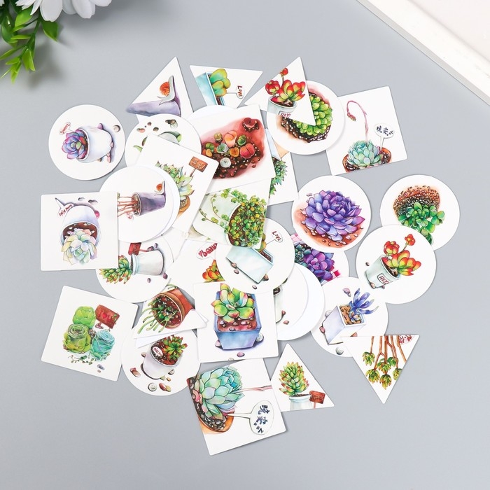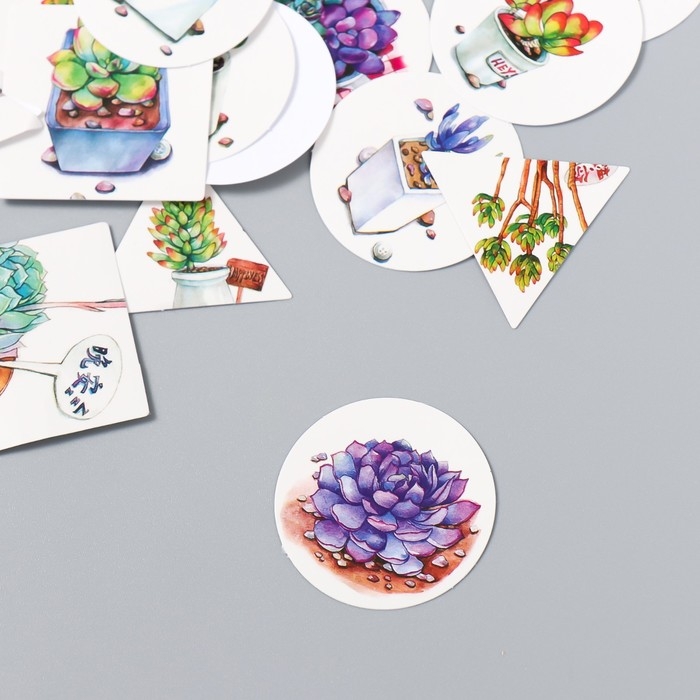 Набор наклеек "Суккуленты" 40 шт в коробочке 3,8х3,8 см