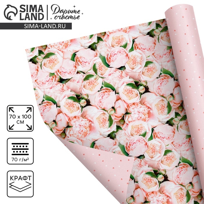Бумага упаковочная двухсторонняя крафтовая «Цветы», 70 х 100 см