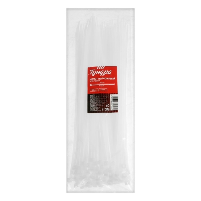 Хомут нейлоновый для стяжки, ТУНДРА, 3,6х250 мм, белый, 100 шт