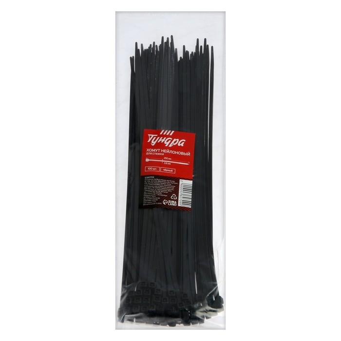 Хомут нейлоновый для стяжки, ТУНДРА, 3,6х250 мм, черный, 100 шт