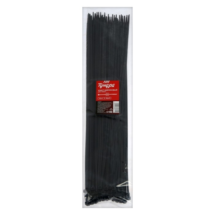 Хомут нейлоновый для стяжки, ТУНДРА, 3,6х400 мм, черный, 100 шт