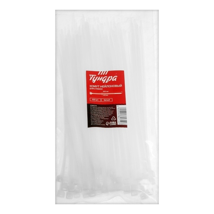 Хомут нейлоновый для стяжки, ТУНДРА, 4,8х200 мм, белый, 100 шт