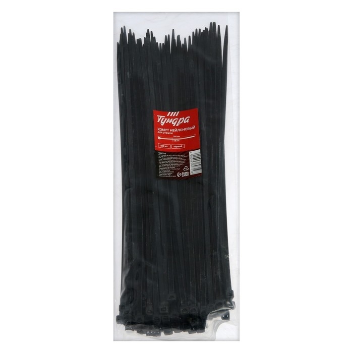 Хомут нейлоновый для стяжки, ТУНДРА, 4,8х300 мм, черный, 100 шт