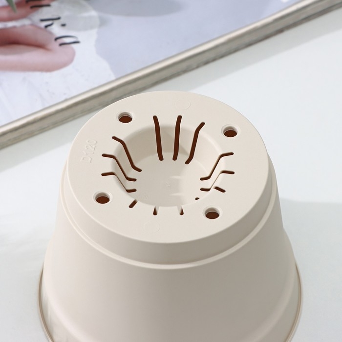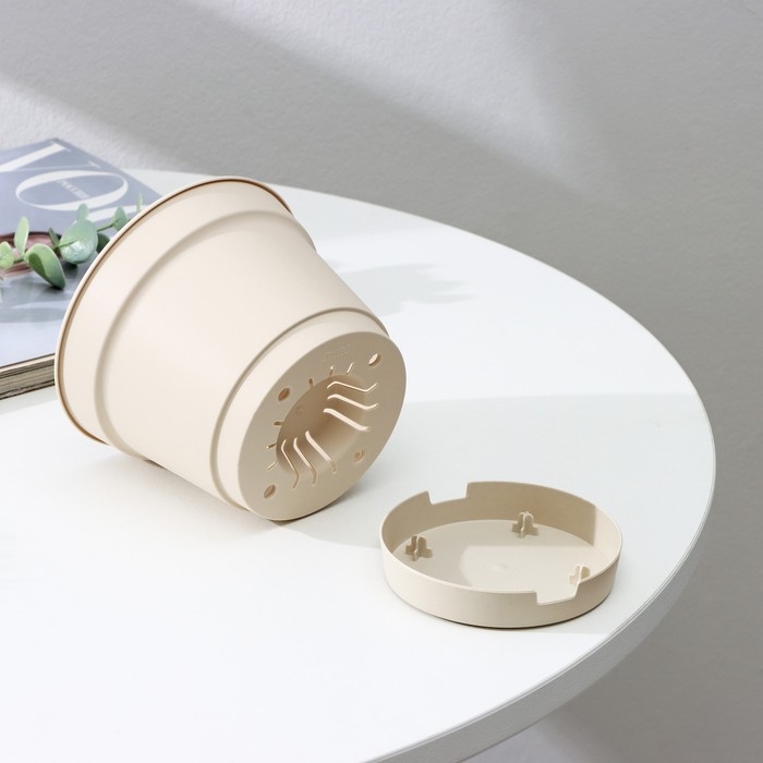Горшок для цветов с поддоном Mint, 700 мл, d=12 см, h=9,4 см, цвет светло-бежевый