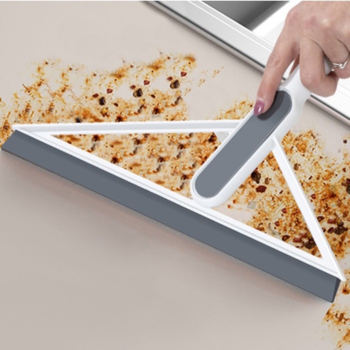 Это универсальная силиконовая швабра, сочетает в себе функции скребка, метлы и веника, подходит для влажной и сухой уборки. Его можно использовать для мытья стеклянных и кафельных поверхностей, а также пола, ванны, автомобиля. В качестве веника, изделие прекрасно собирает шерсть и мусор.
