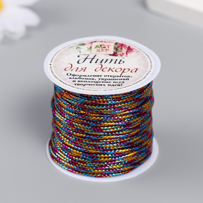 Сутажный шнур на бобине "Радуга" намотка 15 м толщина 2 мм 4,3х4,7х4,7 см