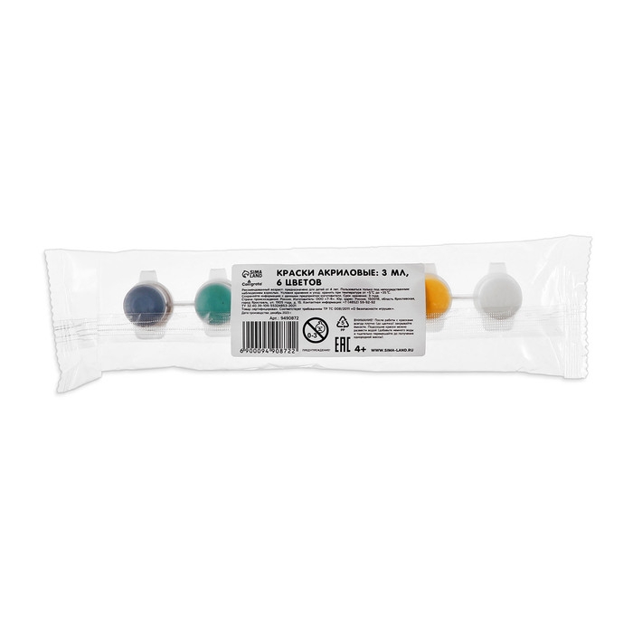 Краска акриловая, набор 6 цветов х 3 мл, Calligrata, морозостойкие, в пакете