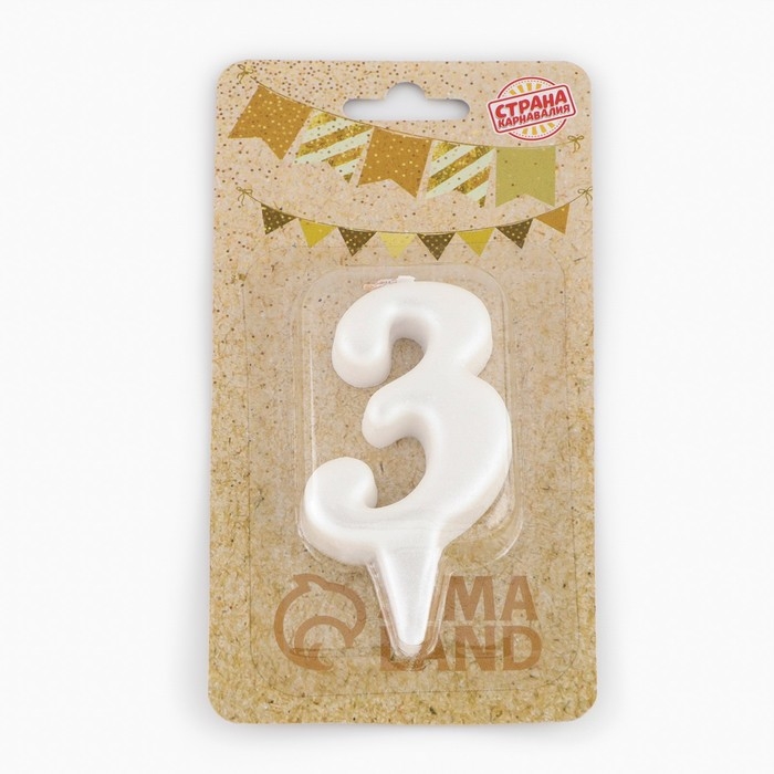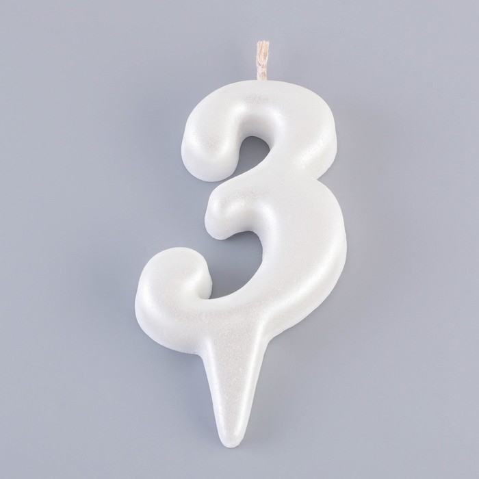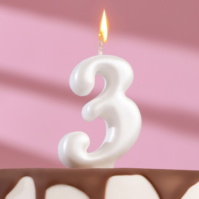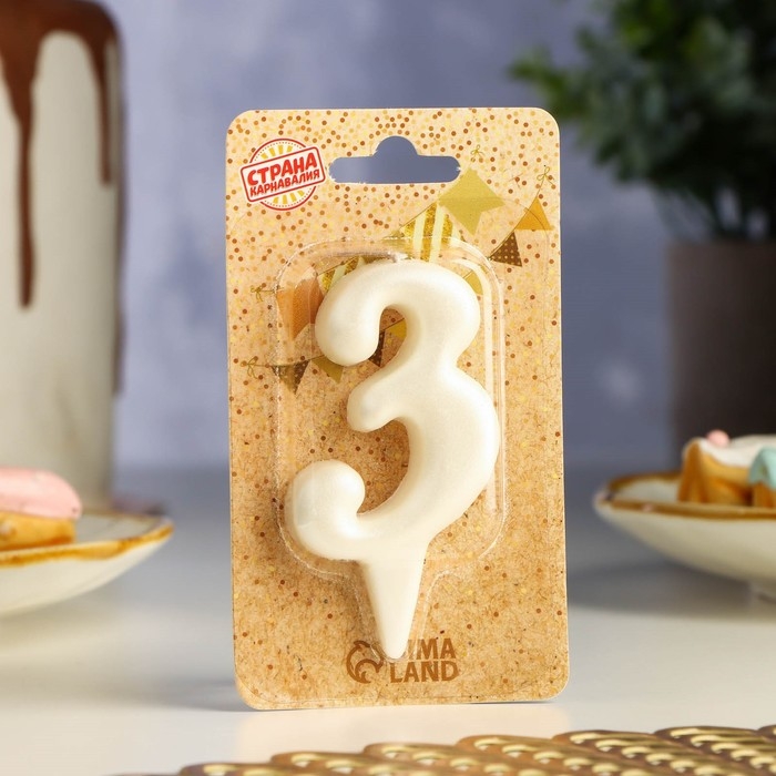 Свеча для торта "Овал" цифра "3", большая, жемчужный, 5,5 см