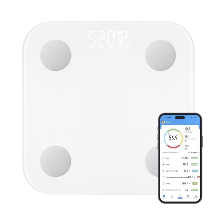 Весы напольные Windigo LVE-030, диагностические, до180 кг, от 3хAAA, стекло, белые