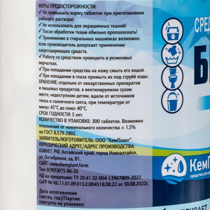 Дезинфицирующее средство "Фарма-Хлор", 300 таблеток, 1 кг