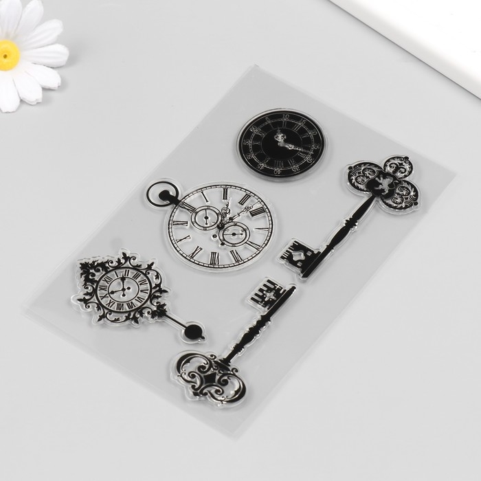 Штамп для творчества силикон "Винтаж. Часы и ключи" 16х11 см