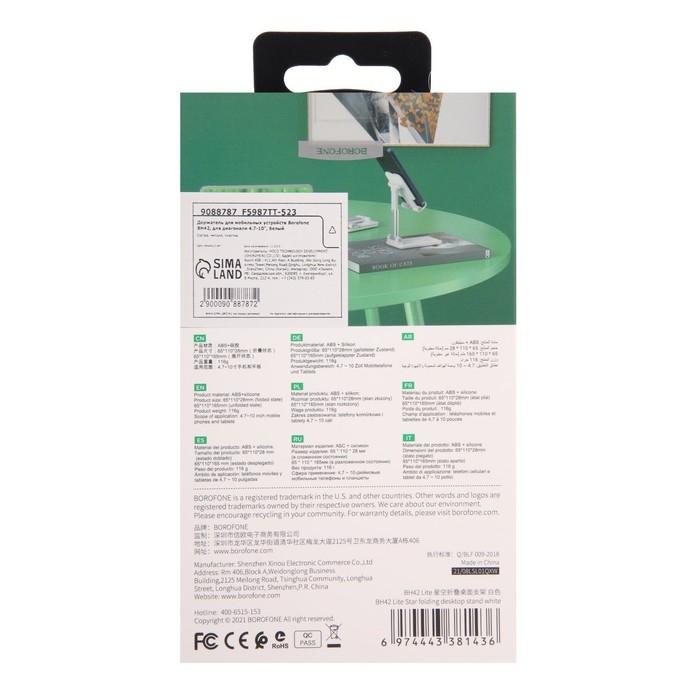 Держатель для мобильных устройств Borofone BH42 — это удобное и функциональное решение для использования вашего телефона или планшета в любой обстановке. Подходит для устройств с диагональю от 4.7 до 10 дюймов, что делает его универсальным для большинства популярных моделей смартфонов и планшетов. Благодаря стильному белому дизайну, он легко впишется в интерьер вашего дома или офиса. Прочный и регулируемый механизм позволяет надежно фиксировать устройство в нужном положении, обеспечивая комфорт при просмотре видео, видеозвонках или во время работы.