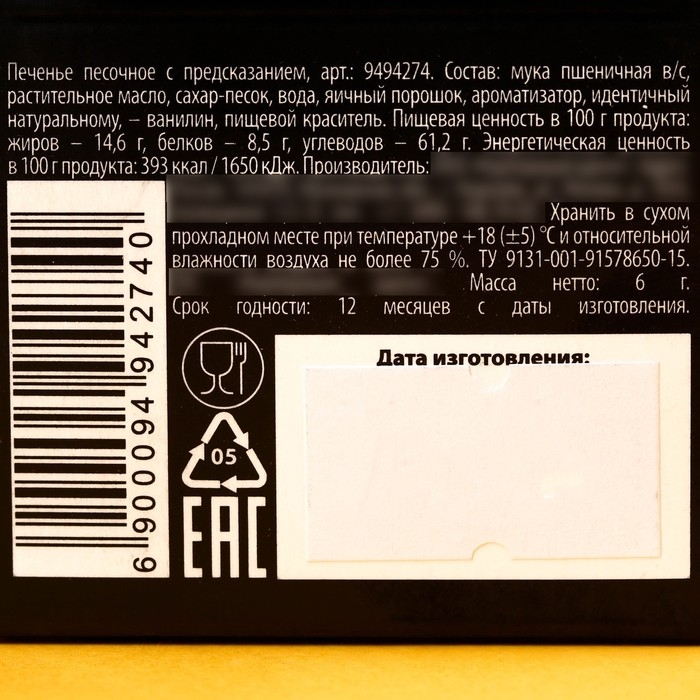 Печенье с предсказанием, 1 шт "Узнай свою судьбу"