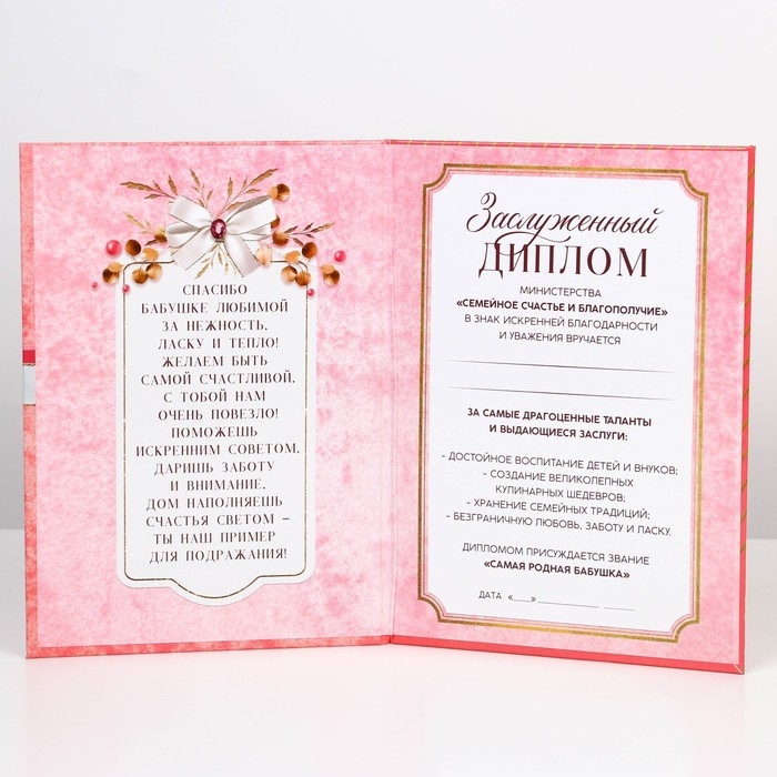 Праздничный диплом — прекрасный вариант оригинального поздравления. Изящные изображения, тёплые искренние слова, поле для имени получателя и список достижений — вот яркие черты этого аксессуара.
