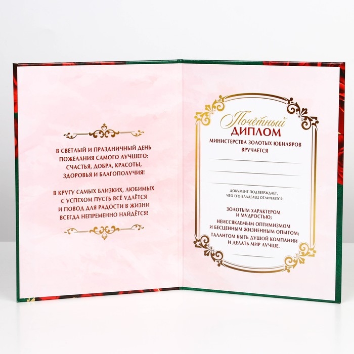 Праздничный диплом — прекрасный вариант оригинального поздравления. Изящные изображения, тёплые искренние слова, поле для имени получателя и список достижений — вот яркие черты этого аксессуара.
