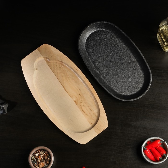 Сковорода чугунная на деревянной подставке Magma «Овал», 24×14×2 см, цвет чёрный